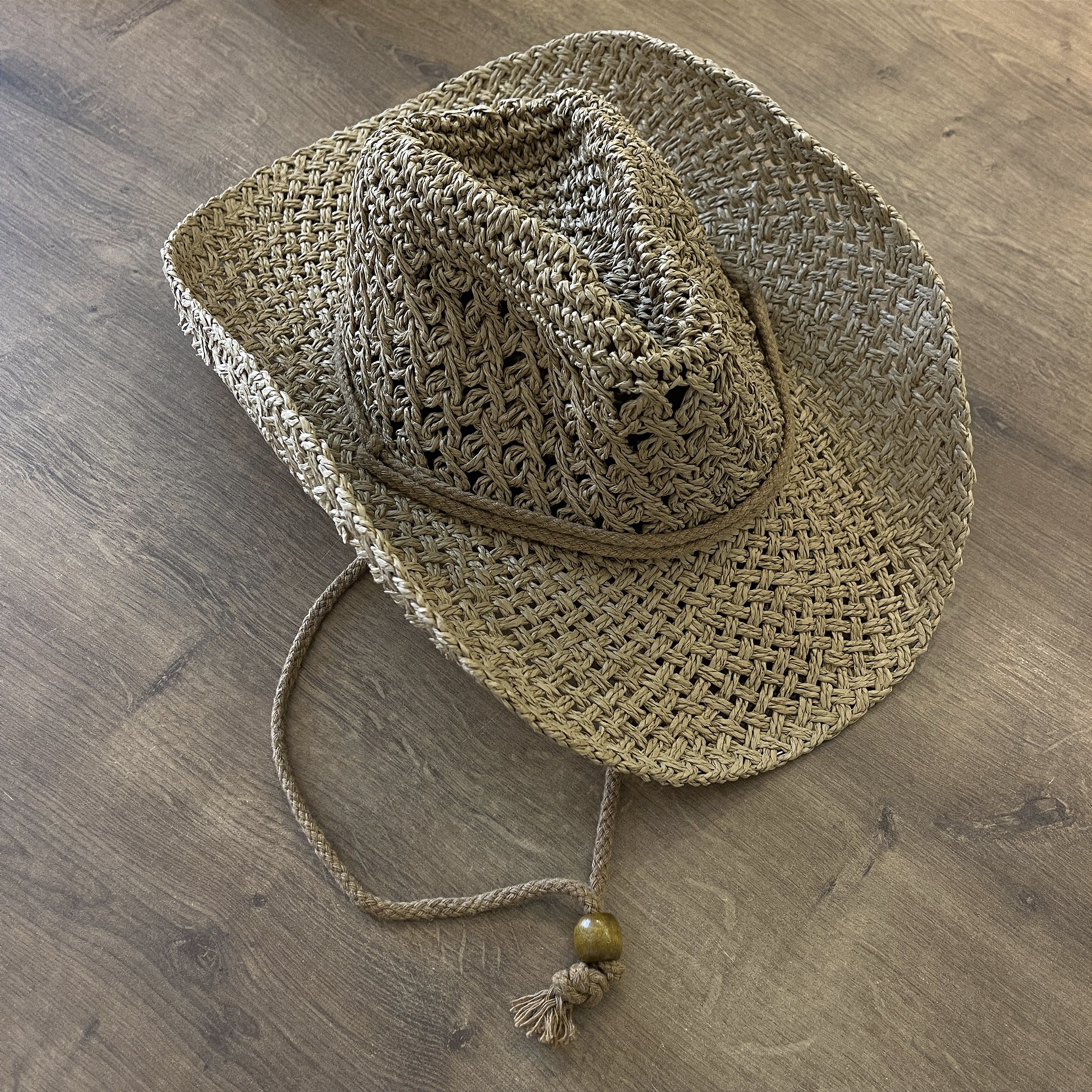 Chapéu tipo Couboy, vazado, entrelassado, caramelo