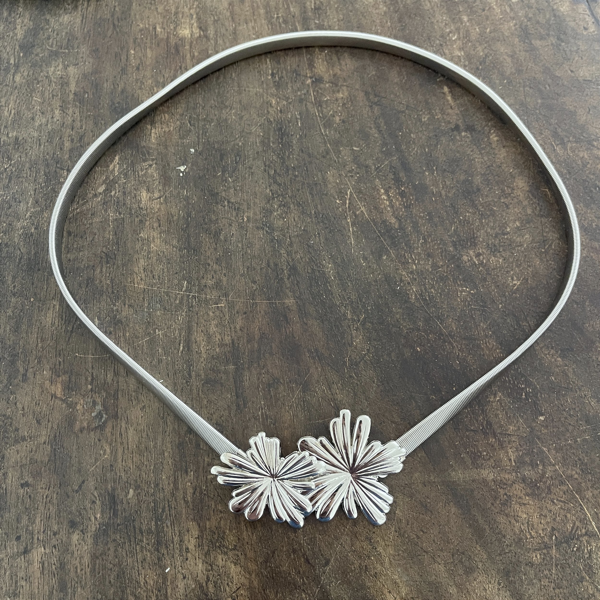 cinto de mola, com flor, ródio - biju