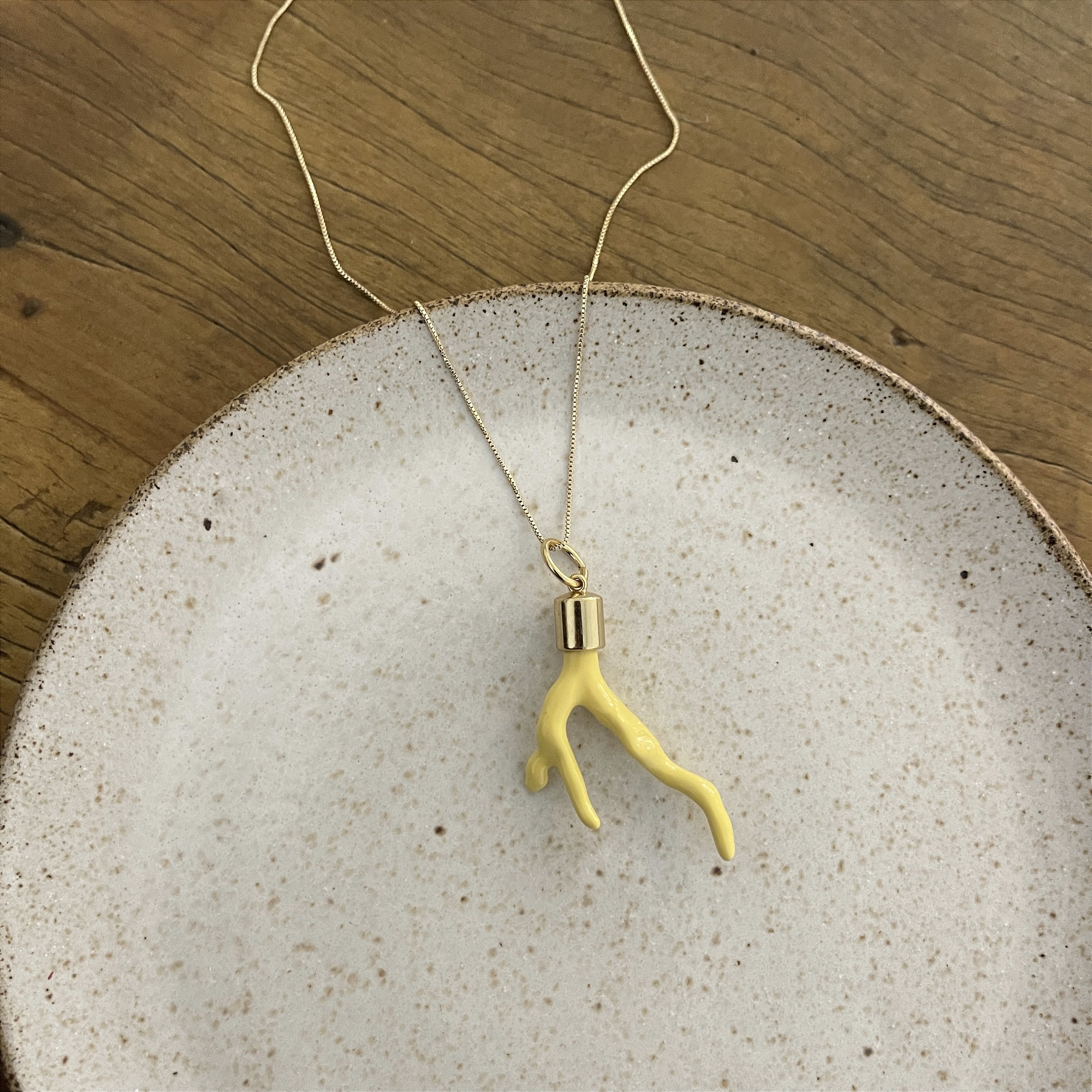 colar corrente veneziana com pingente de coral na cor amarelo, bijuteria