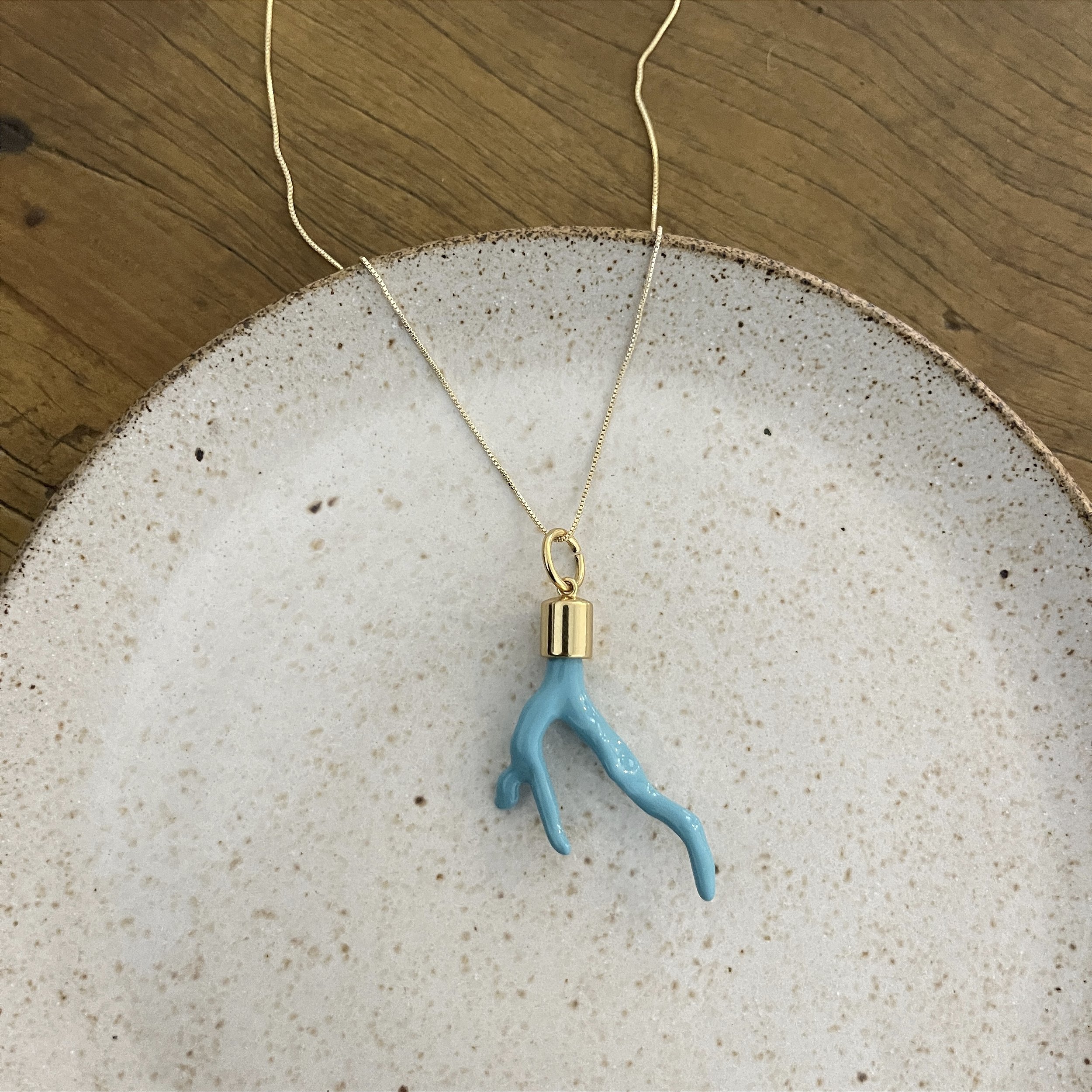 colar corrente veneziana com pingente de coral na cor turquesa, bijuteria
