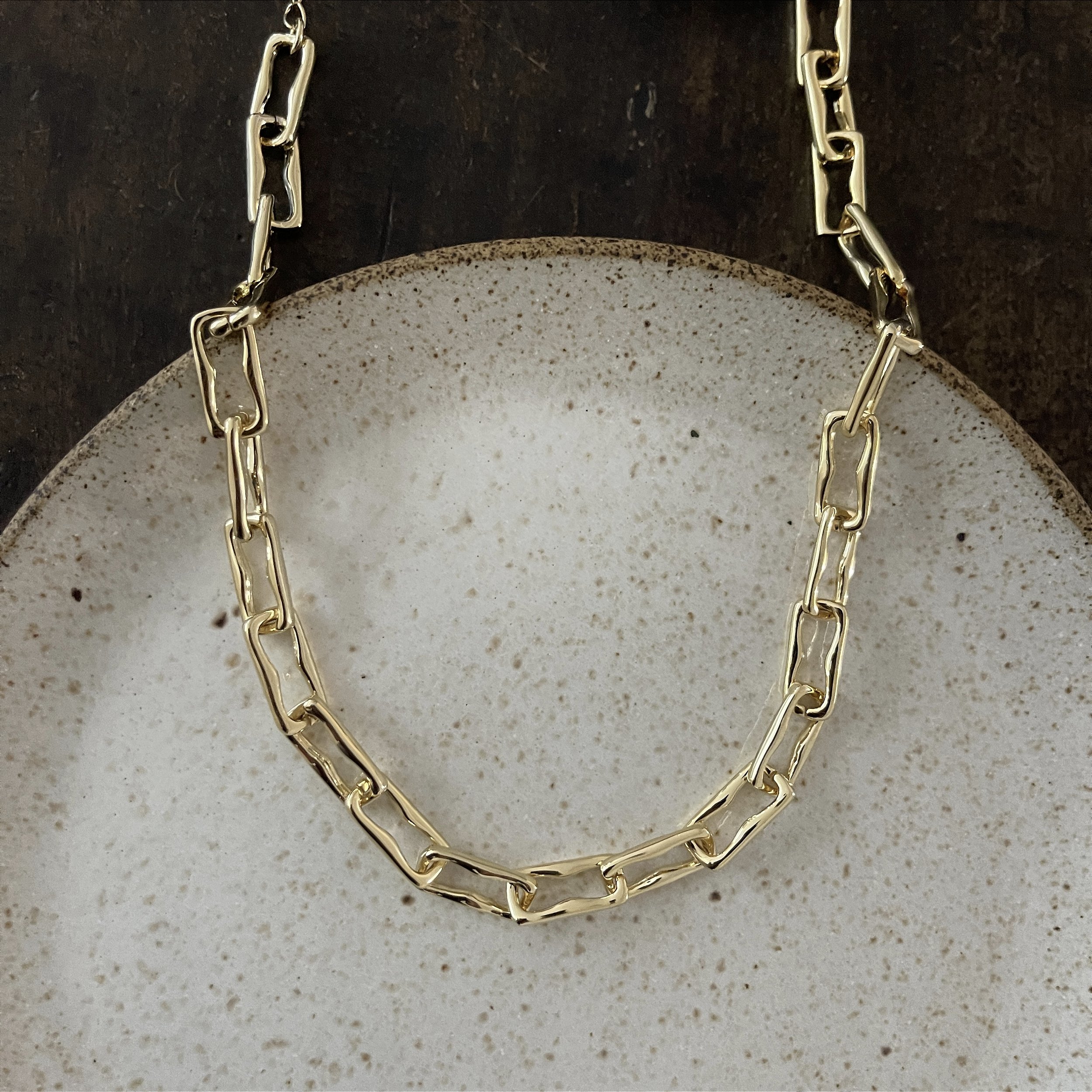 colar corrente retangular, dourado - bijuteria