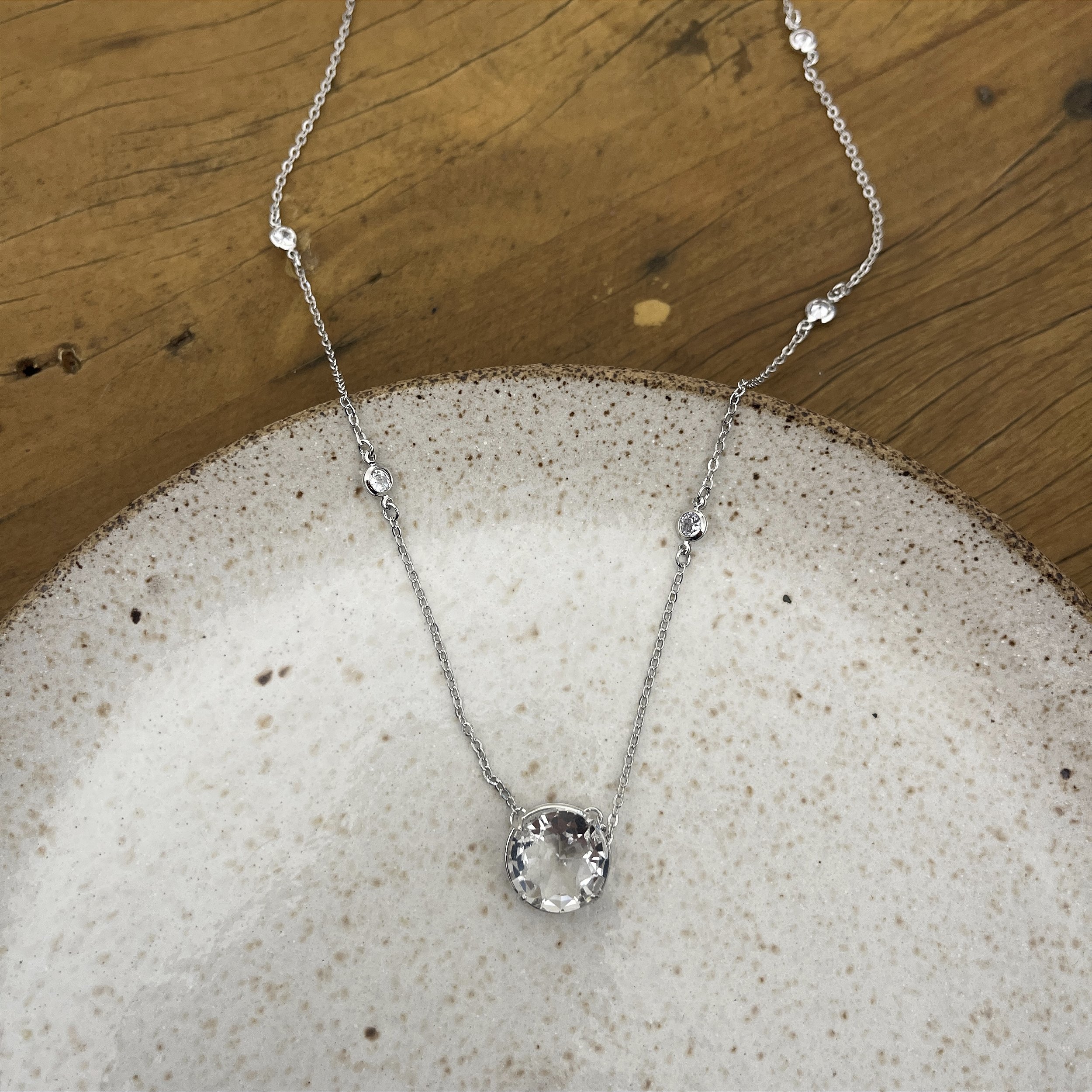 colar corrente com mini cristais e um cristal grande de pingente, ródio - semijoia