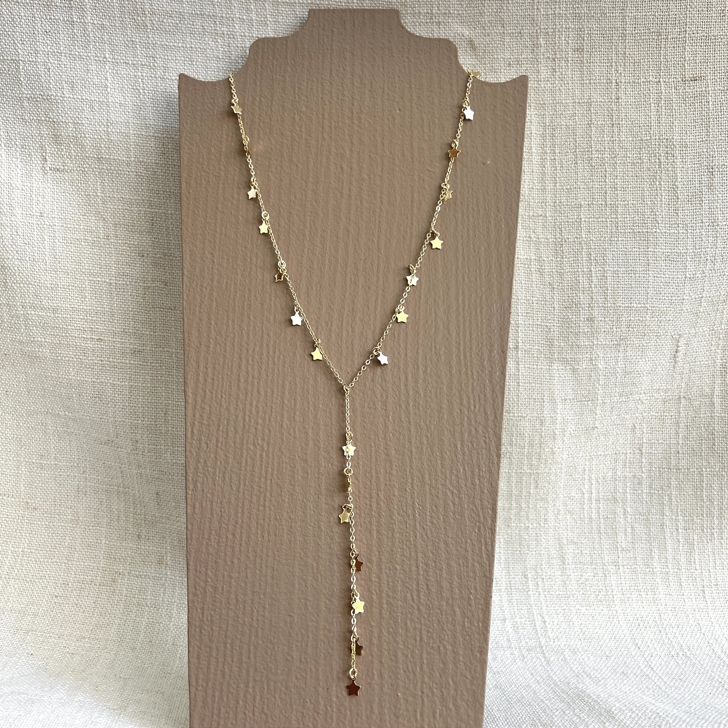 colar gravata com estrelas pequenas, dourado - semijoia - ouro 18k