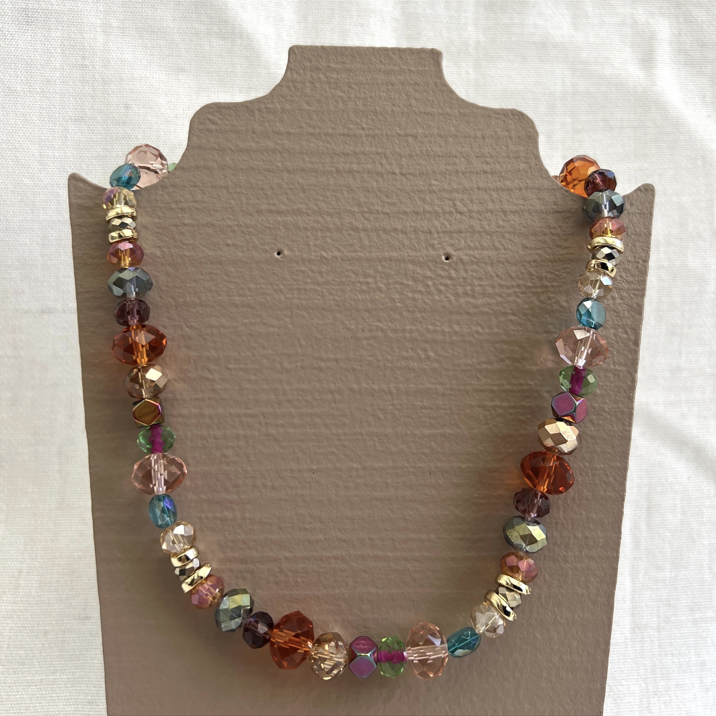 Colar com Cristais coloridos cores claras de várias formas e tamanhos - bijuteria.