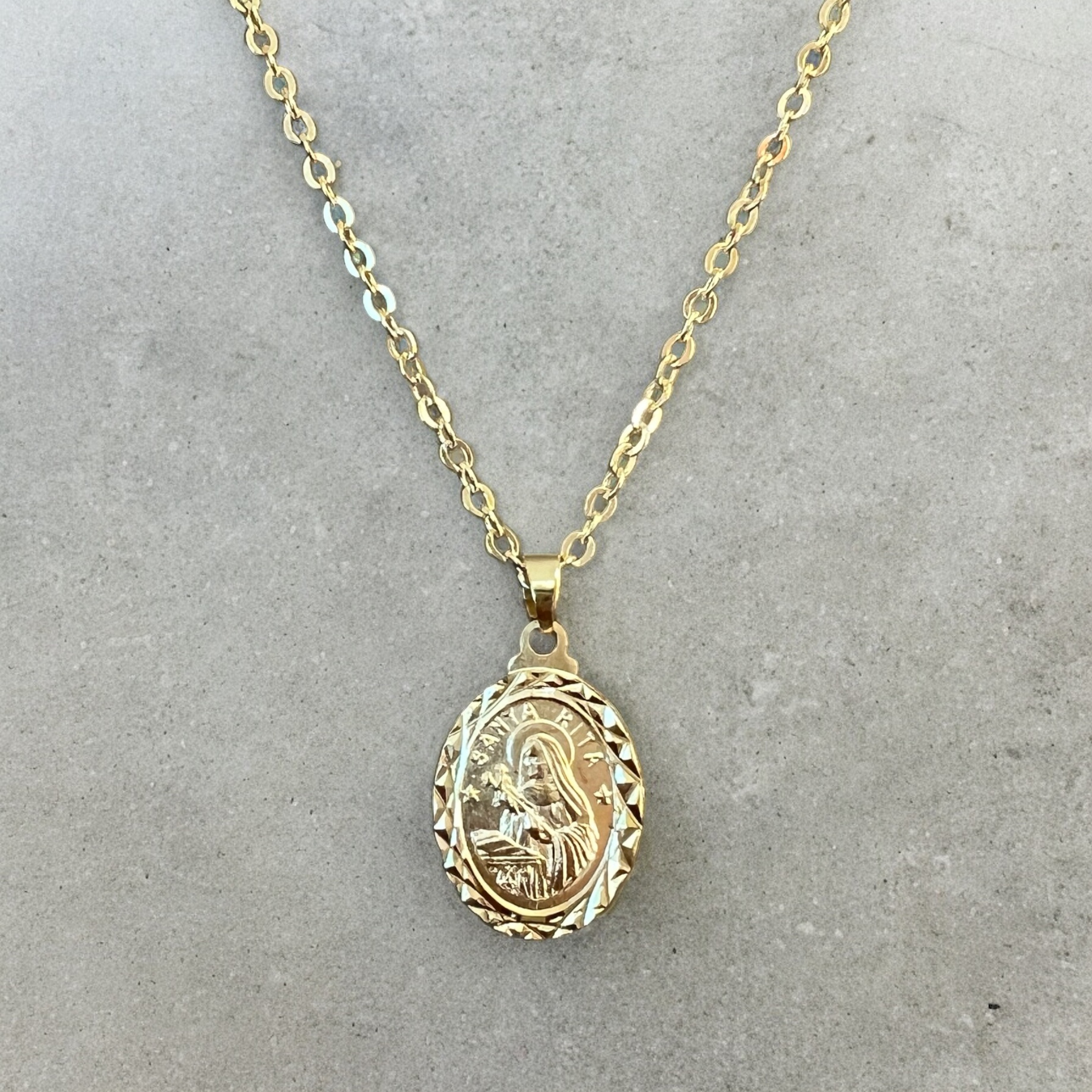 colar medalha Santa Rita, dourado - semijoia