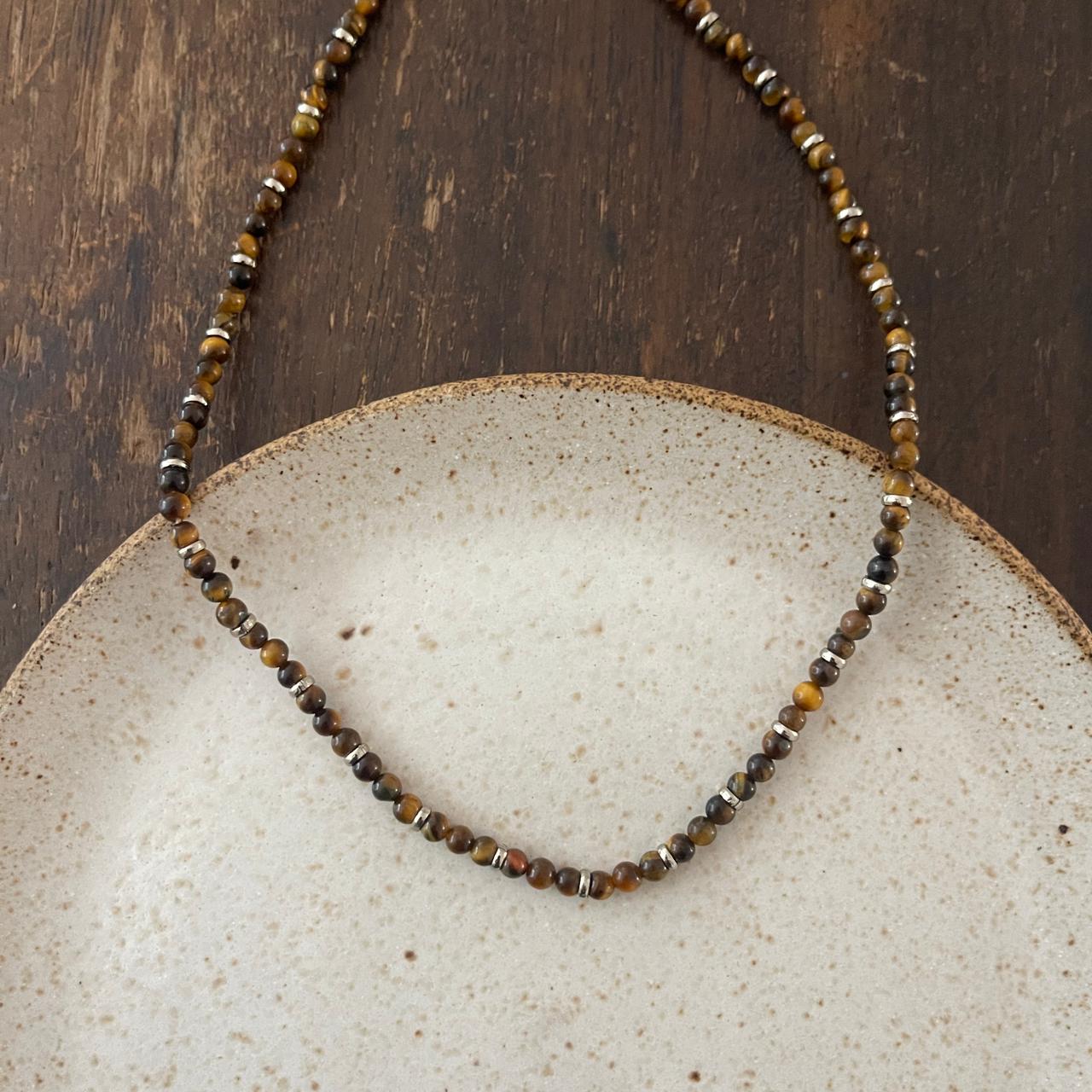 Colar de pedras naturais , curto , ródio, bijuteria.