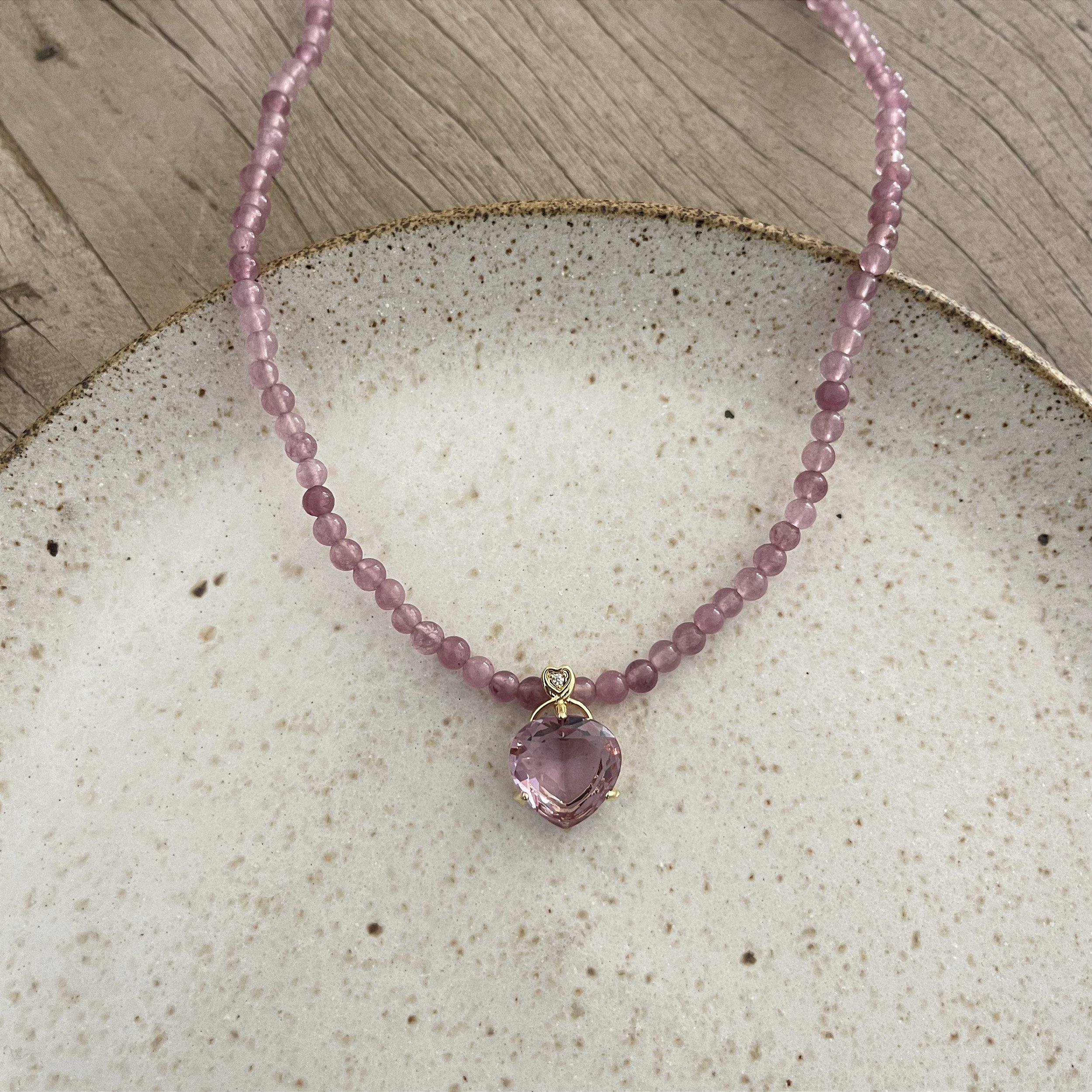 colar de murano lavanda com entremeios dourados e um pingente na cor lavanda - semi joia