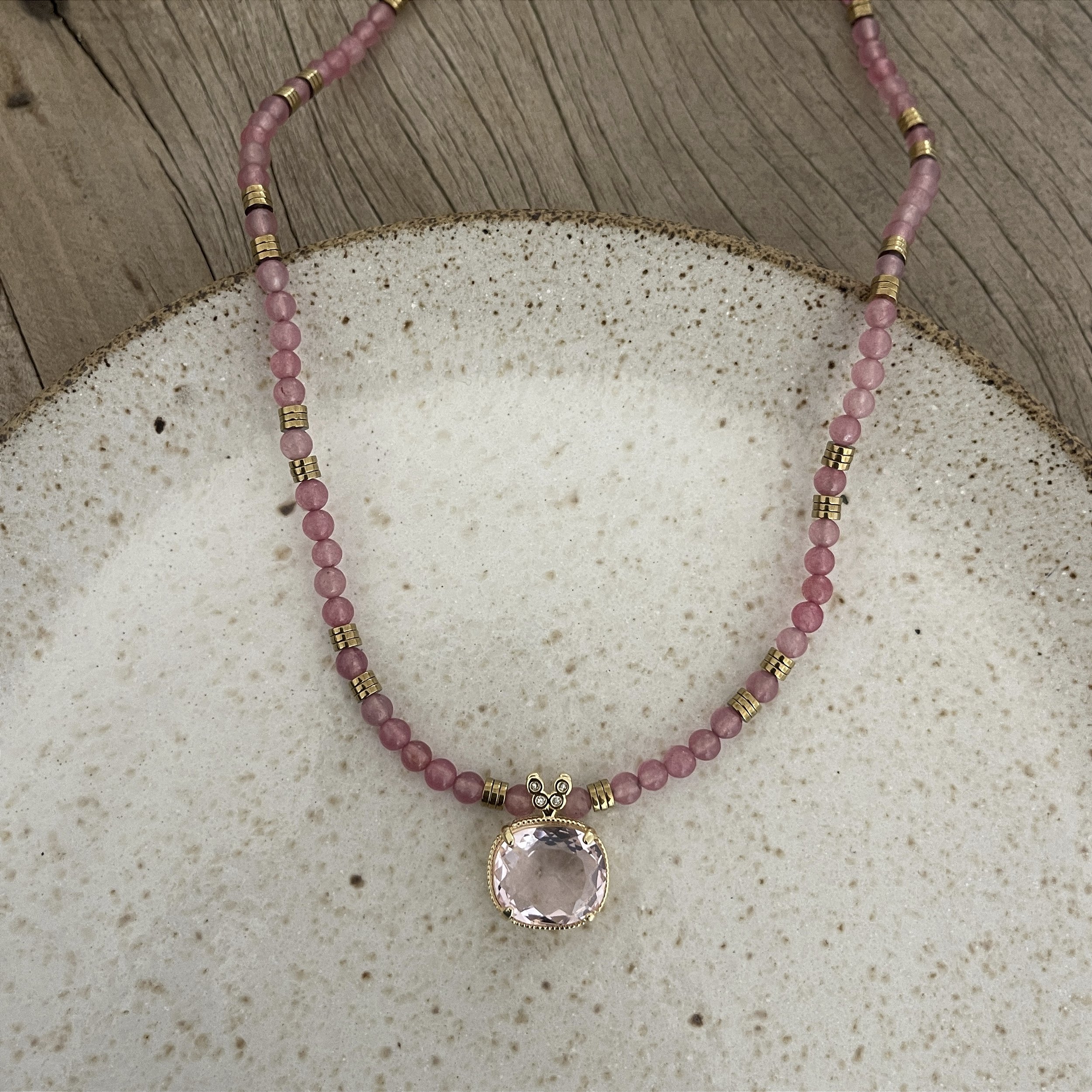 colar de murano colors com entremeios dourados e um pingente na cor kunzita - semi joia