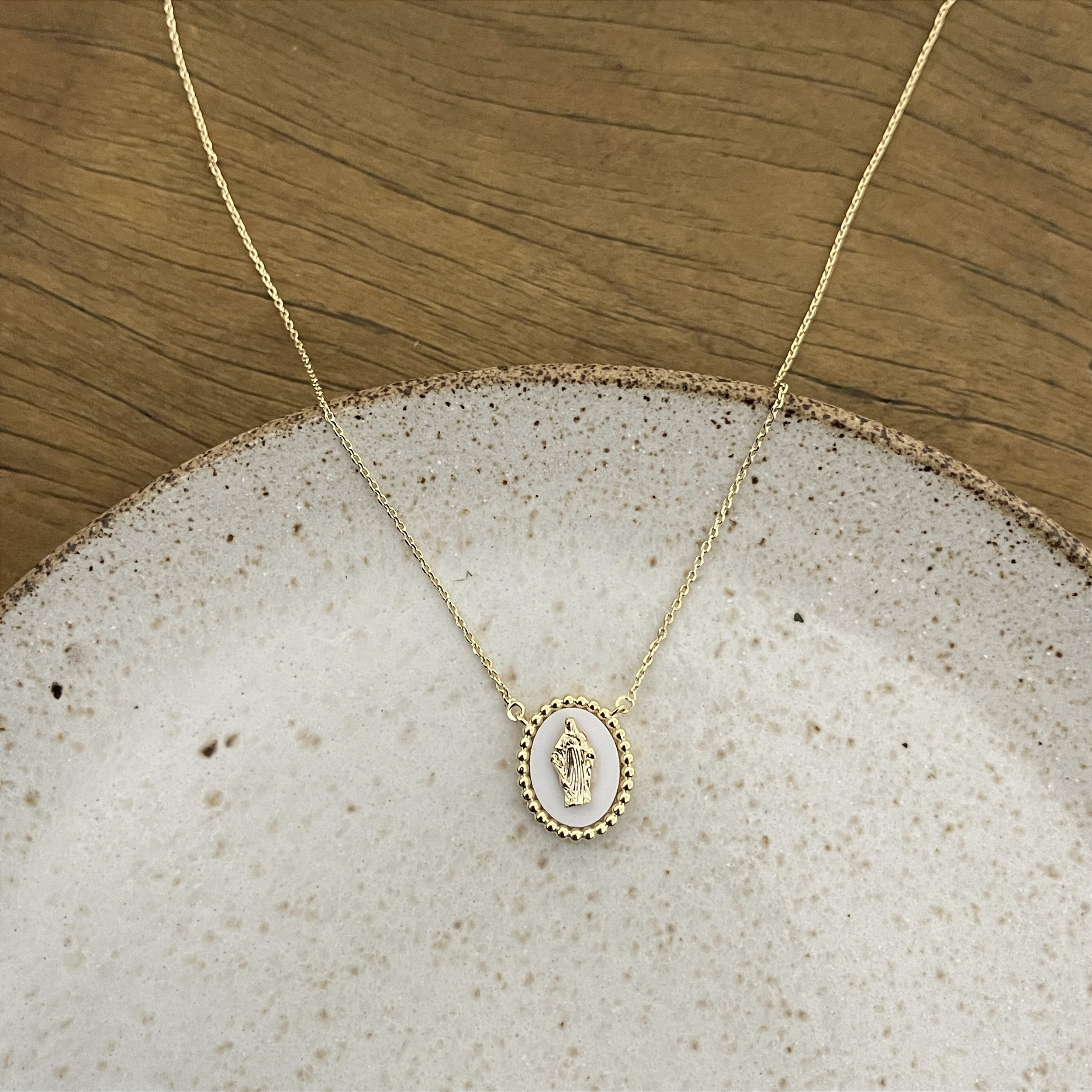 Colar nossa senhora das graças com branco esmaltado no fundo, dourado - semijoia, ouro18k