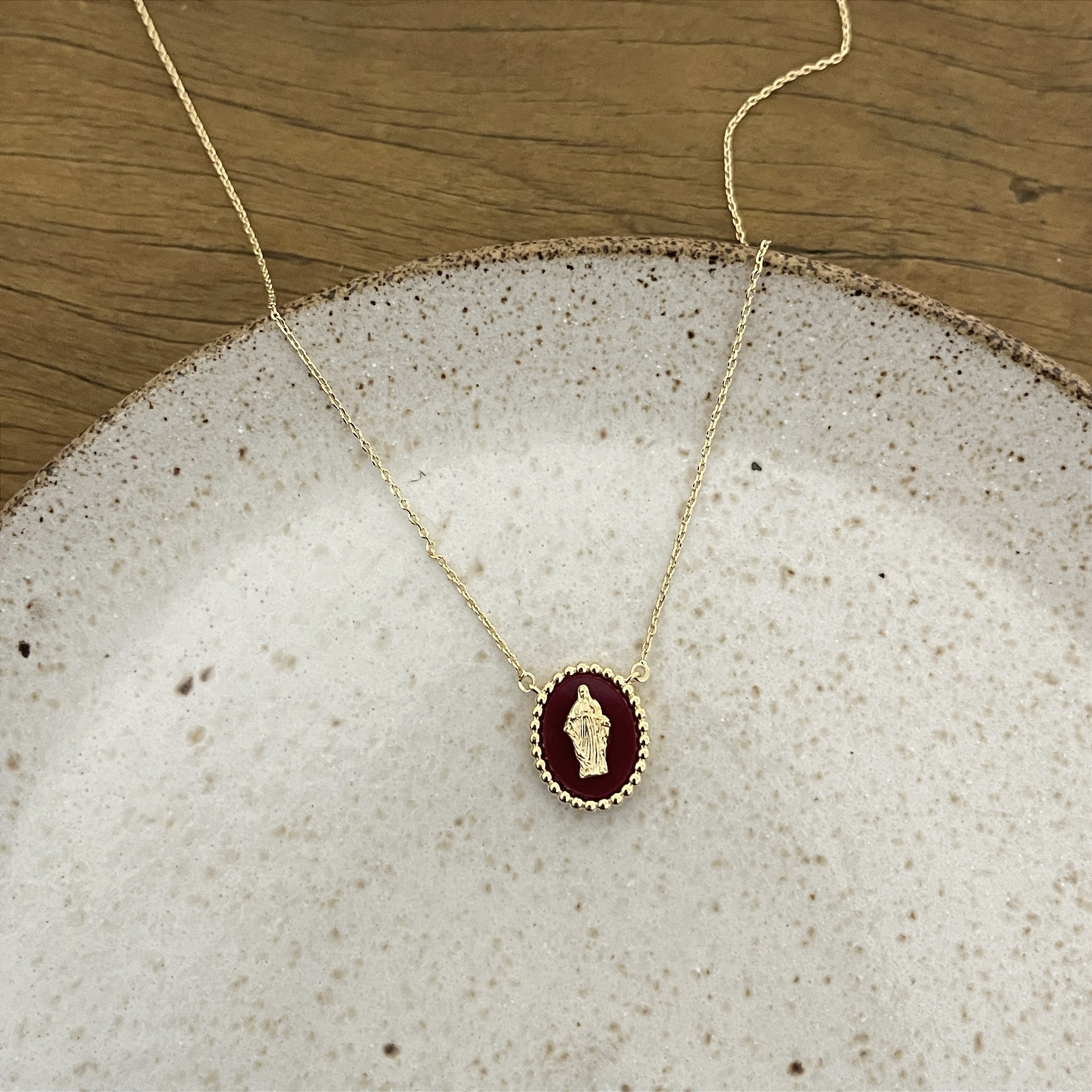 Colar nossa senhora das graças com marsala esmaltado no fundo, dourado - semijoia, ouro18k