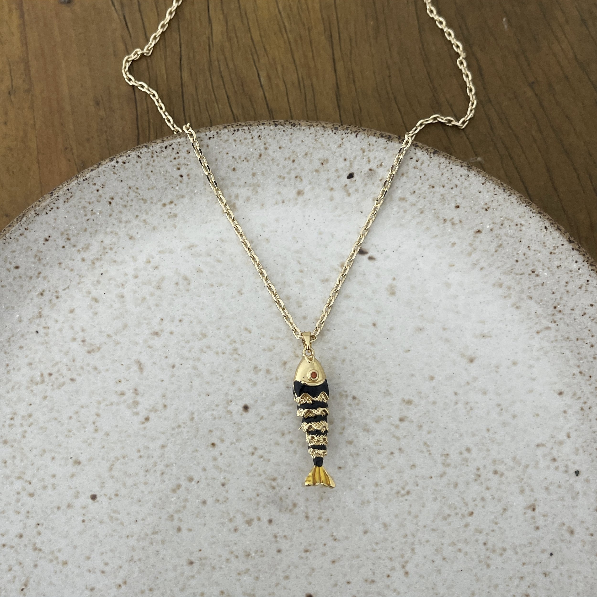 Colar corrente elos com pingente de peixe dourado com preto