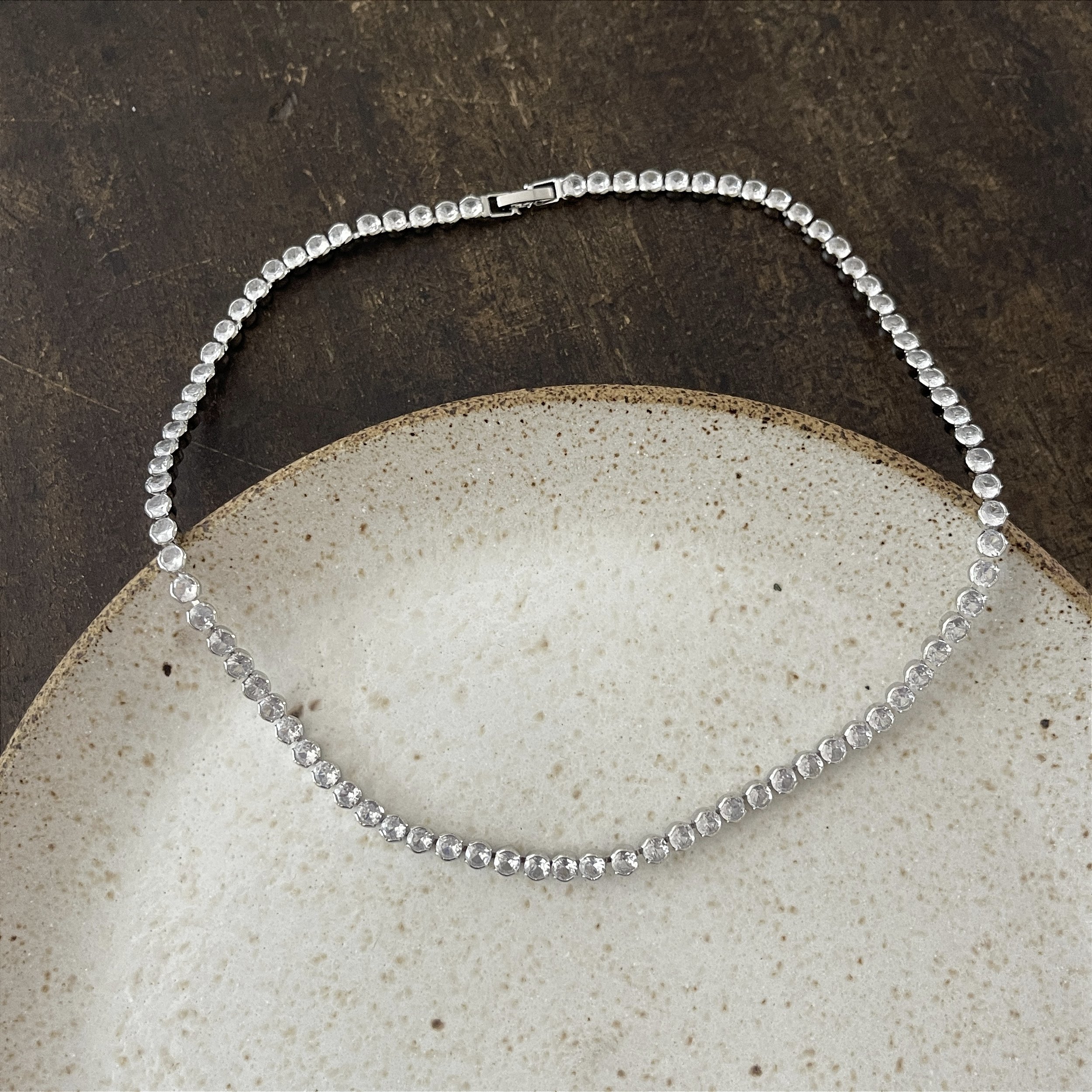 colar curto de zircônia ródio. design moderno, elegante e fácil de combinar — bijuteria