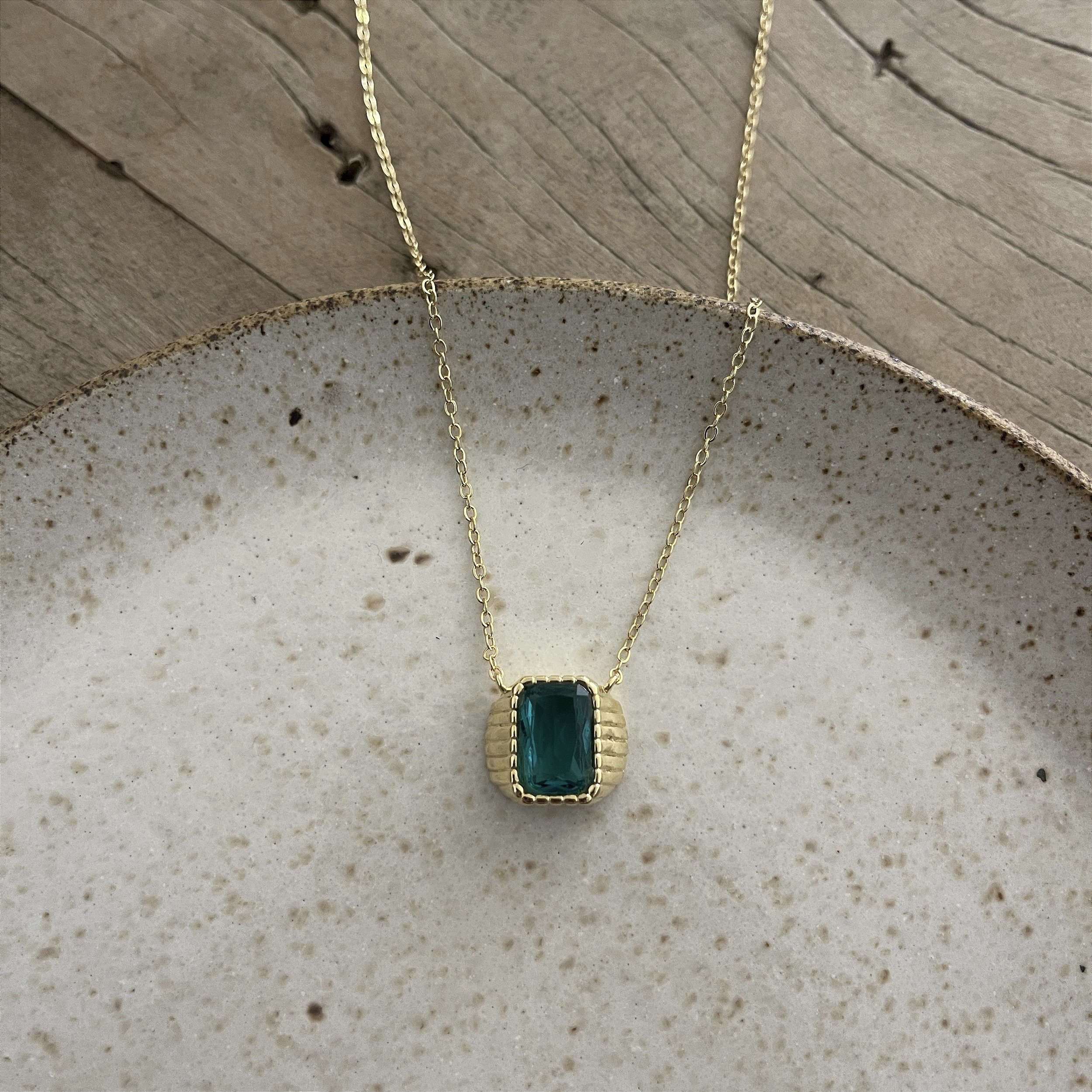 Colar corrente mini Elos Portugueses, com um pingente de Esmeralda retangular, Semijóia, Ouro 18k