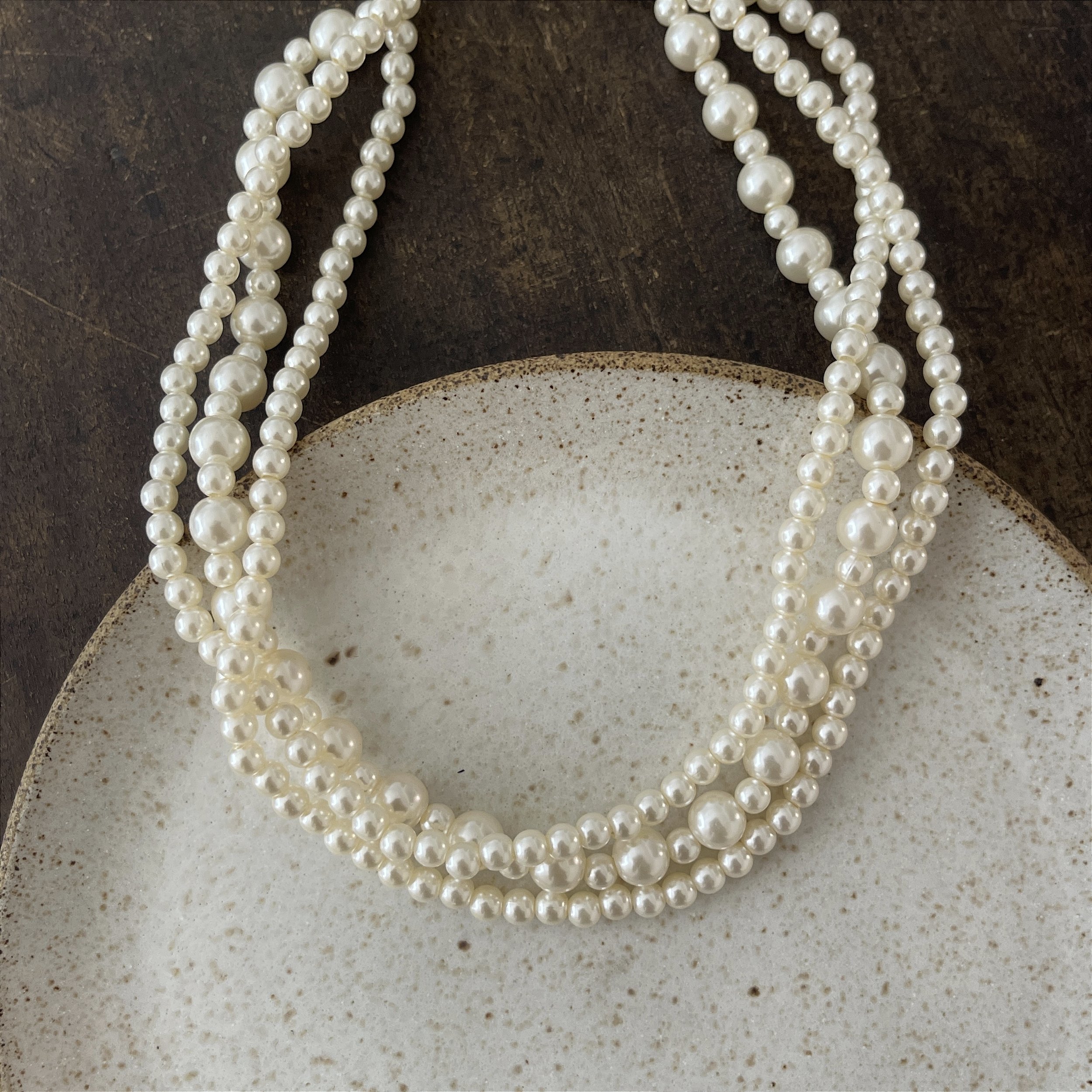 colar trio de pérolas, duas linhas pérolas tam p, e uma linha de pérolas tam p & m - bijuteria