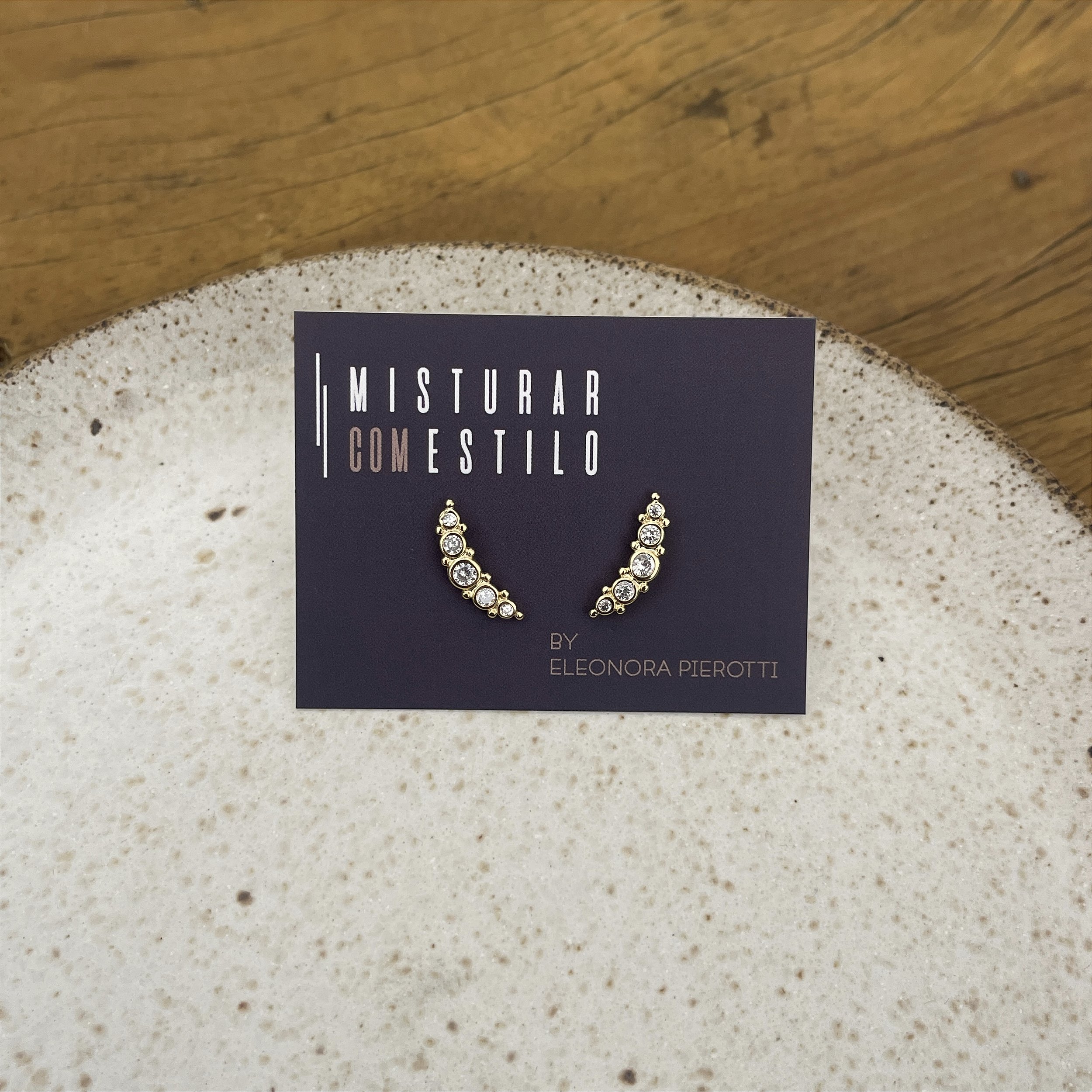 brinco ear cuff de cinco zircônias, dourado - semijoia