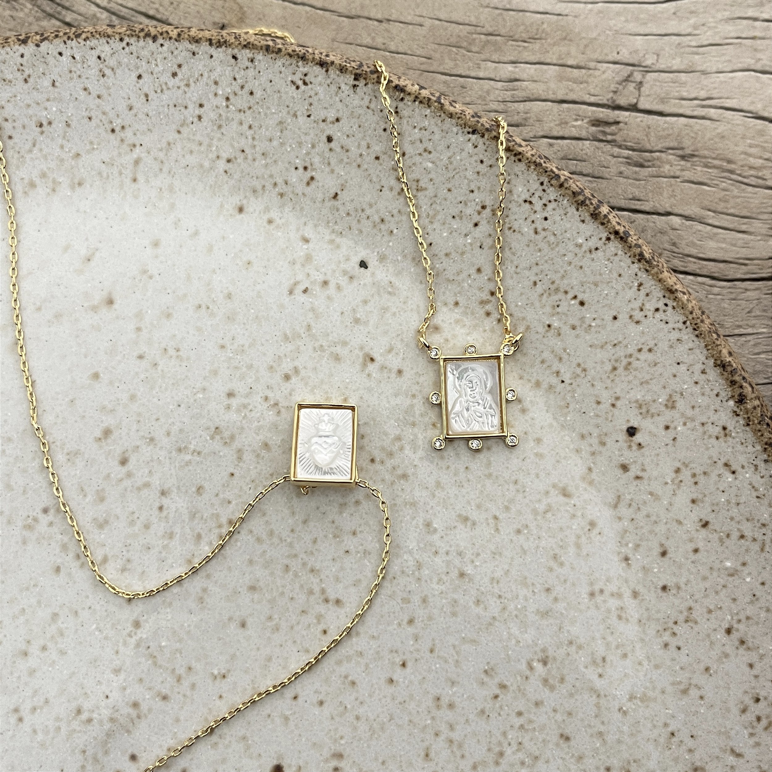 colar quadrado do sagrado coração, e imagem de ... com zircônias em volta, dourado - semijoia
