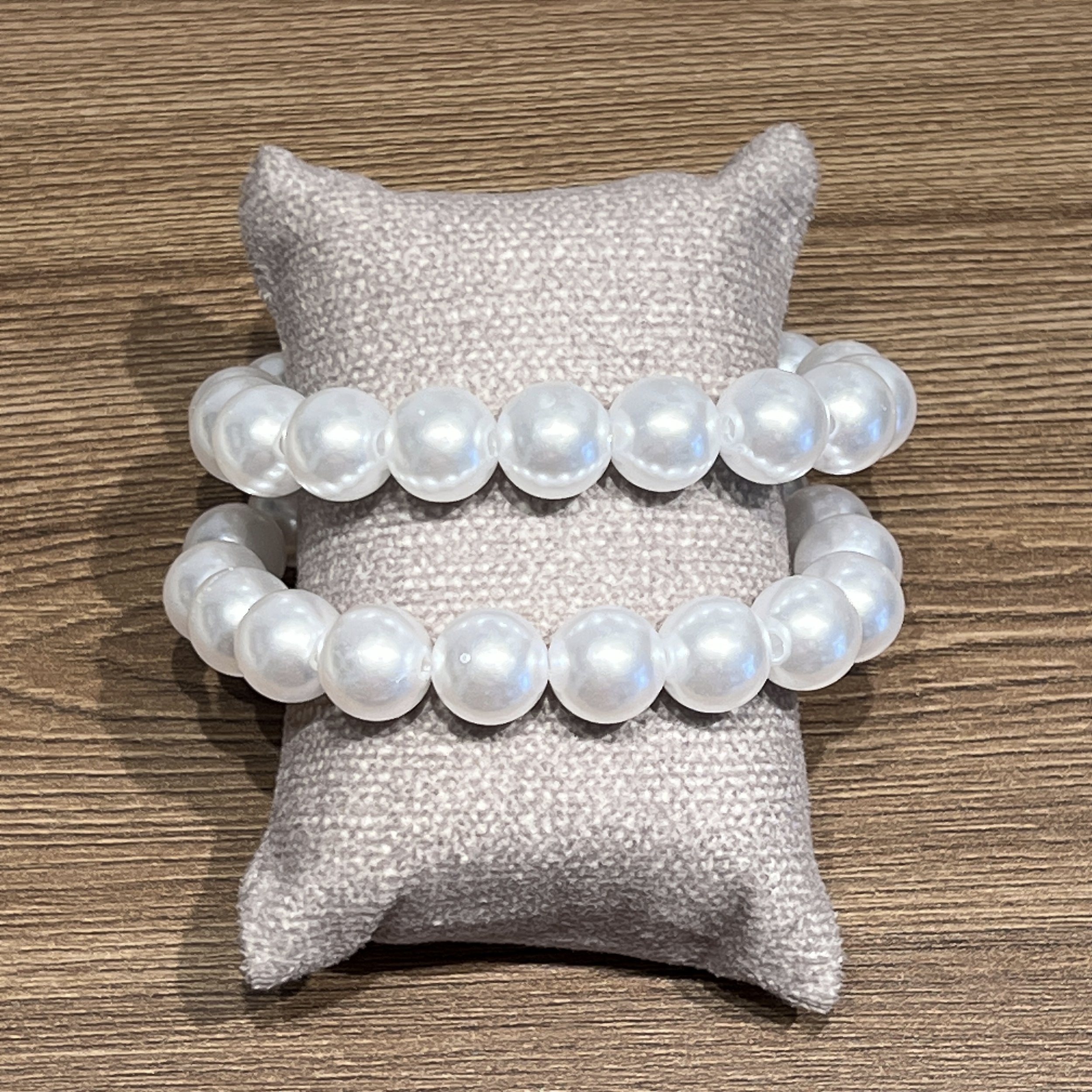 Kit com duas pPulseiras de Bolas, com elástico, perolas brancas - bijuteria