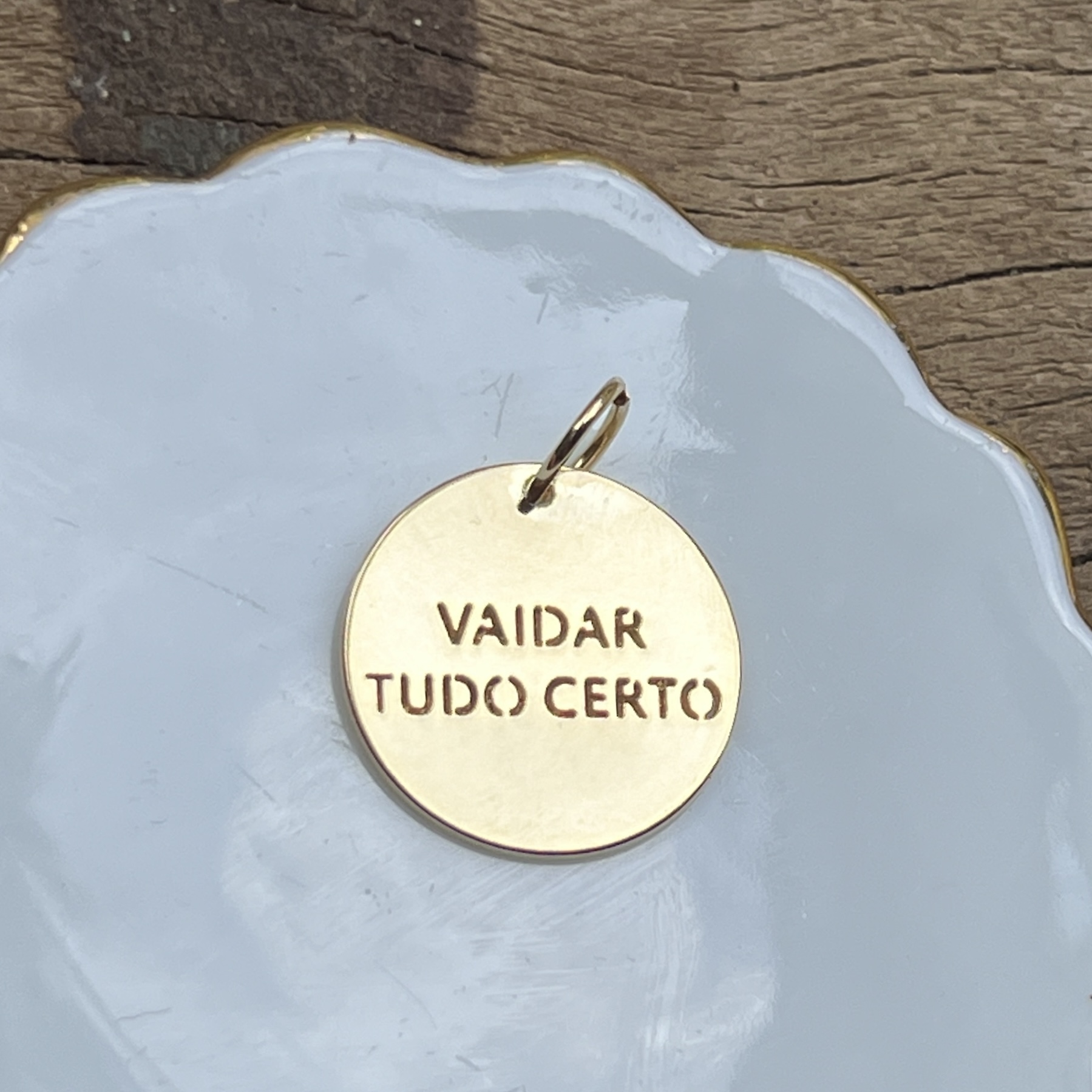medalha redonda com a frase ´´vai dar tudo certo´´ dourado,- semijoia