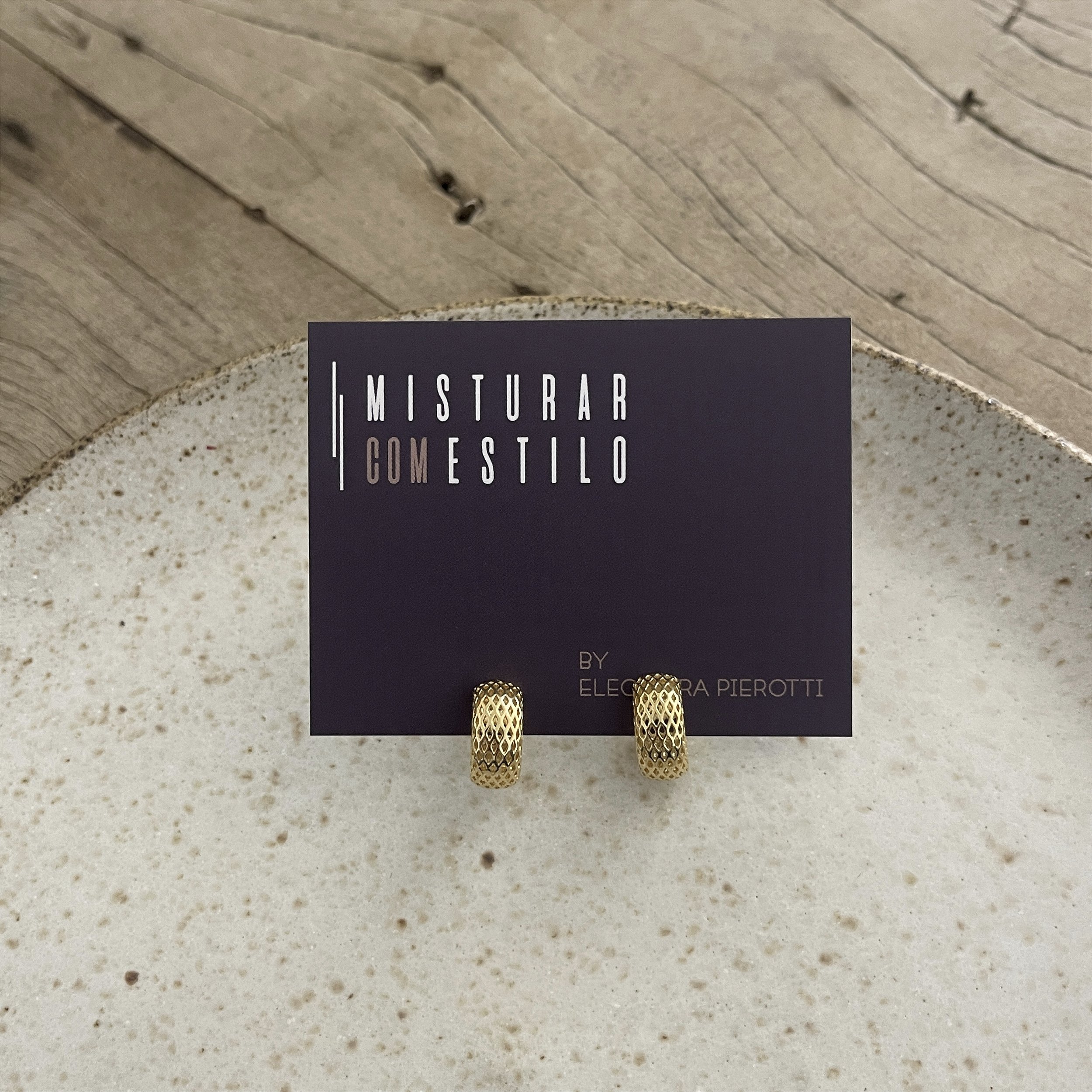 Brinco mini argola vazada aramada, Semijoia, Ouro 18k