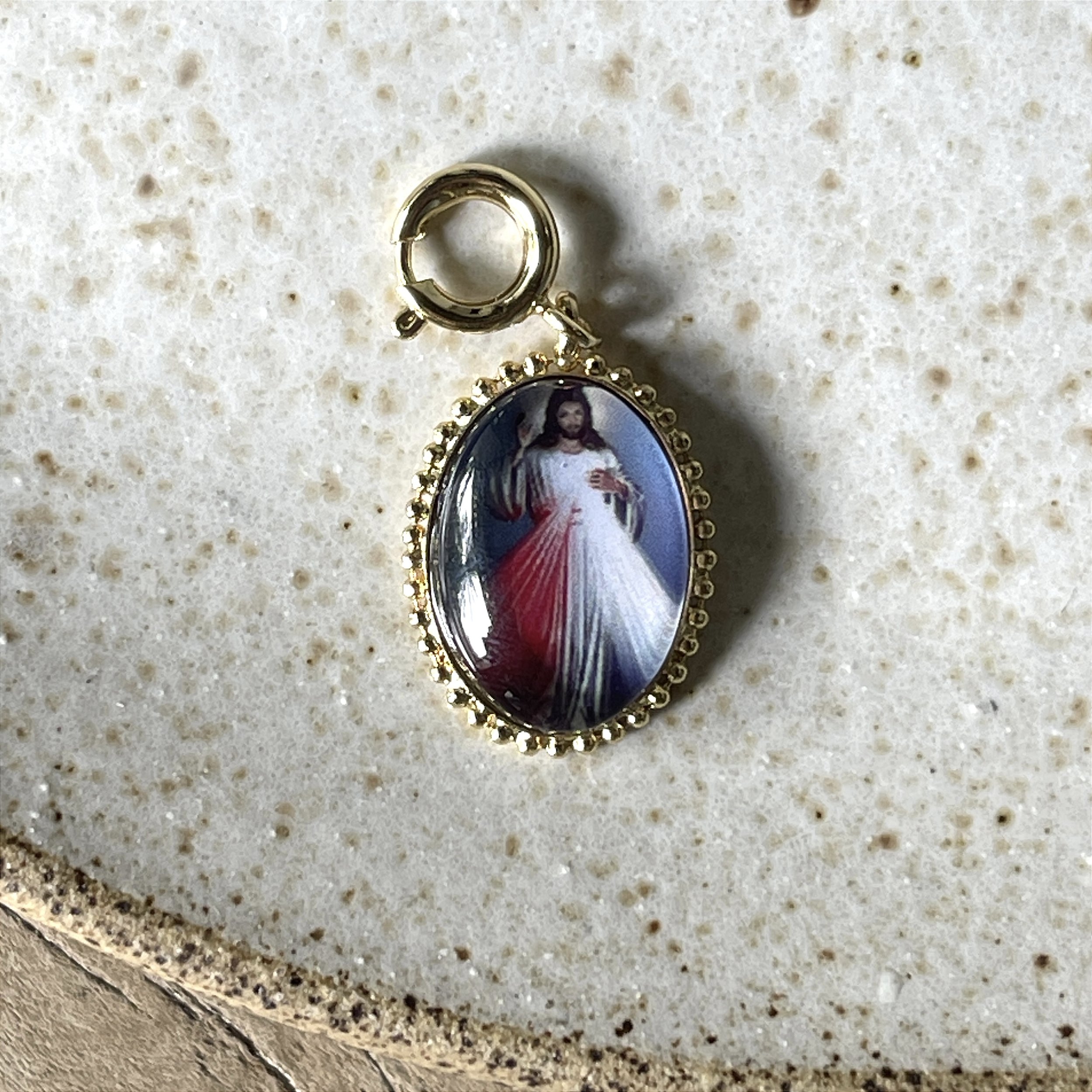 Pingente com imagem colorida e acabamento de resina, semijoia, banho ouro 18k