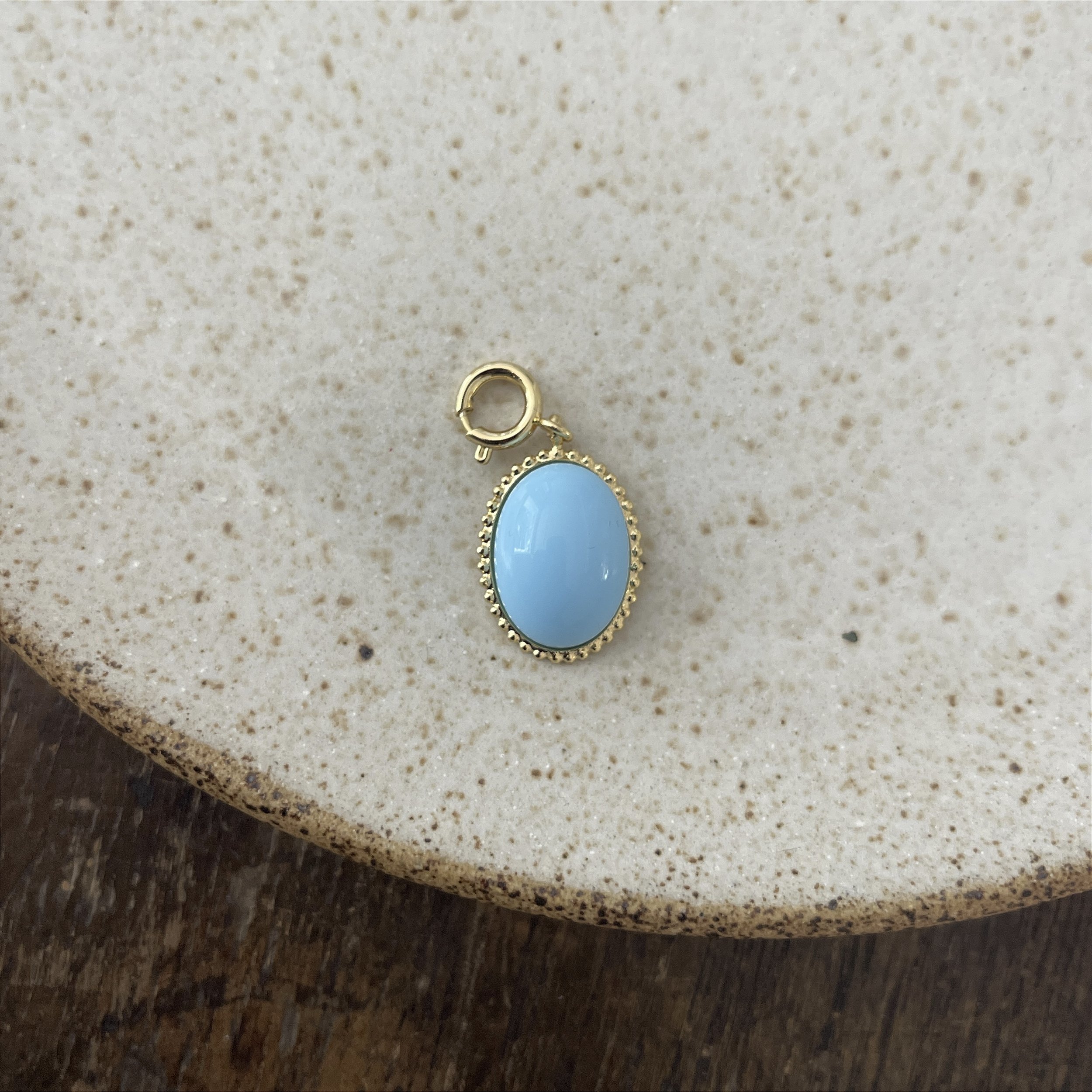 pingente com esferinhas por fora e uma pedra no azul bebê , dourado - semijoia