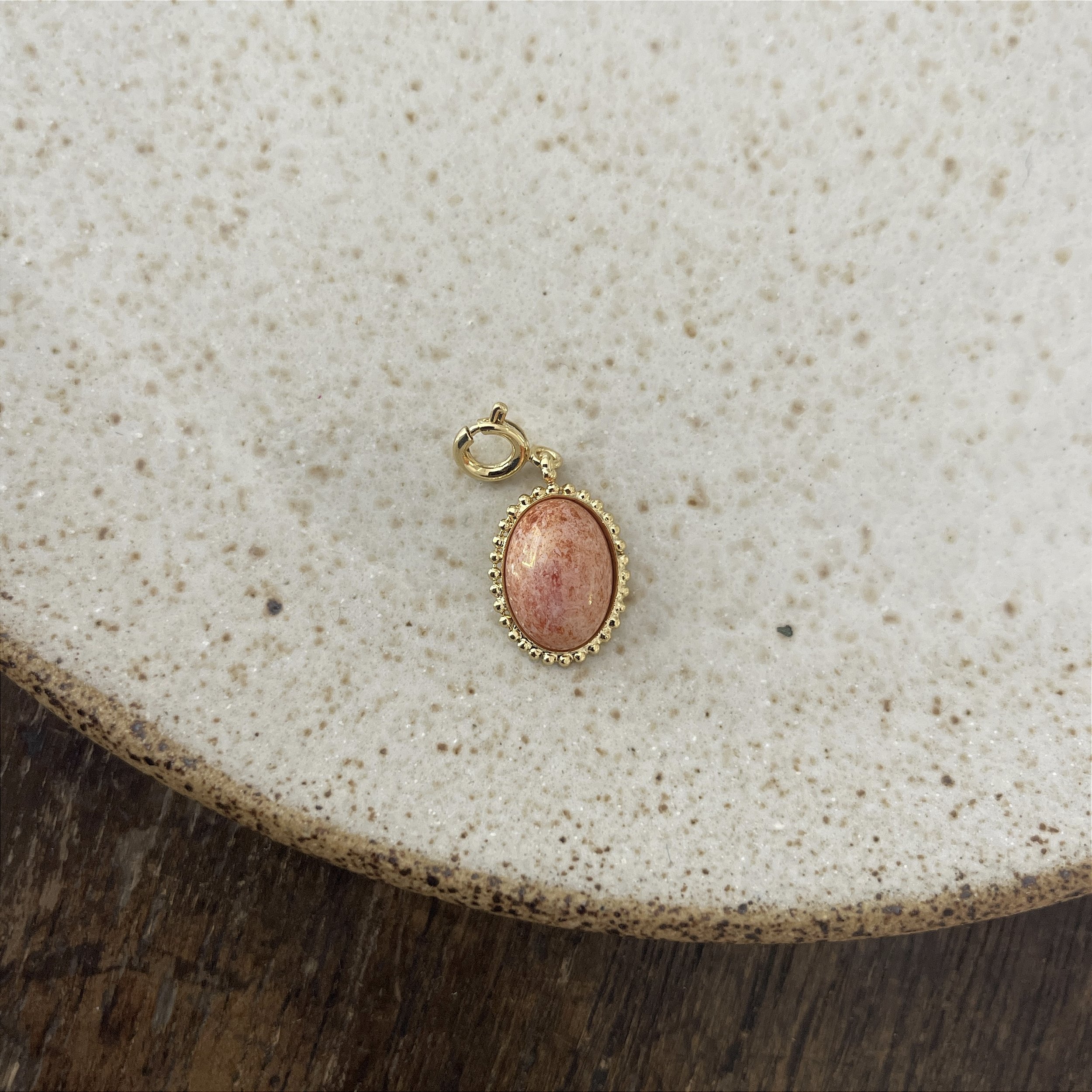 pingente com esferinhas por fora e uma pedra no meio mescla goiaba, dourado - semijoia