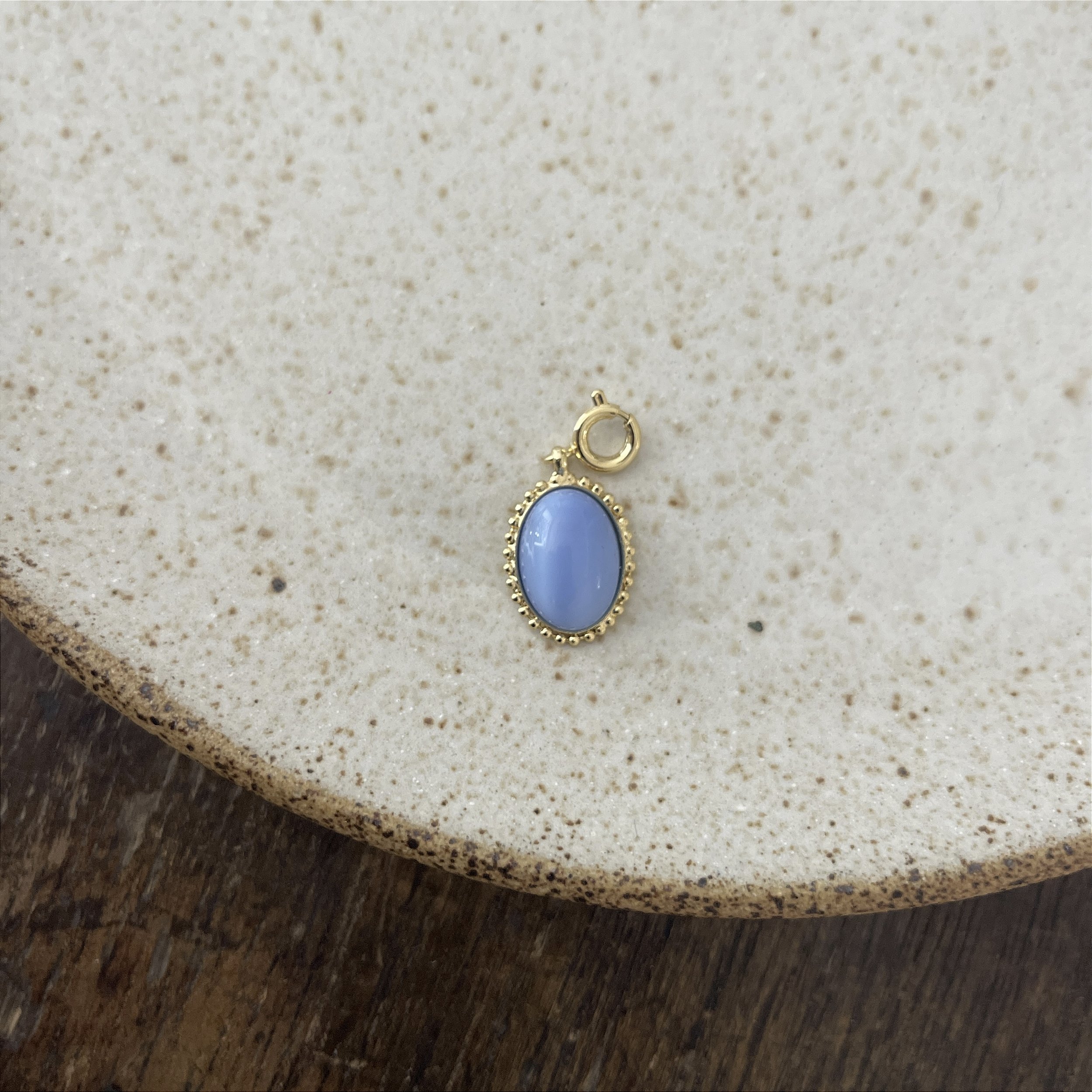 pingente com esferinhas por fora e uma pedra no meio mescla jeans, dourado - semijoia