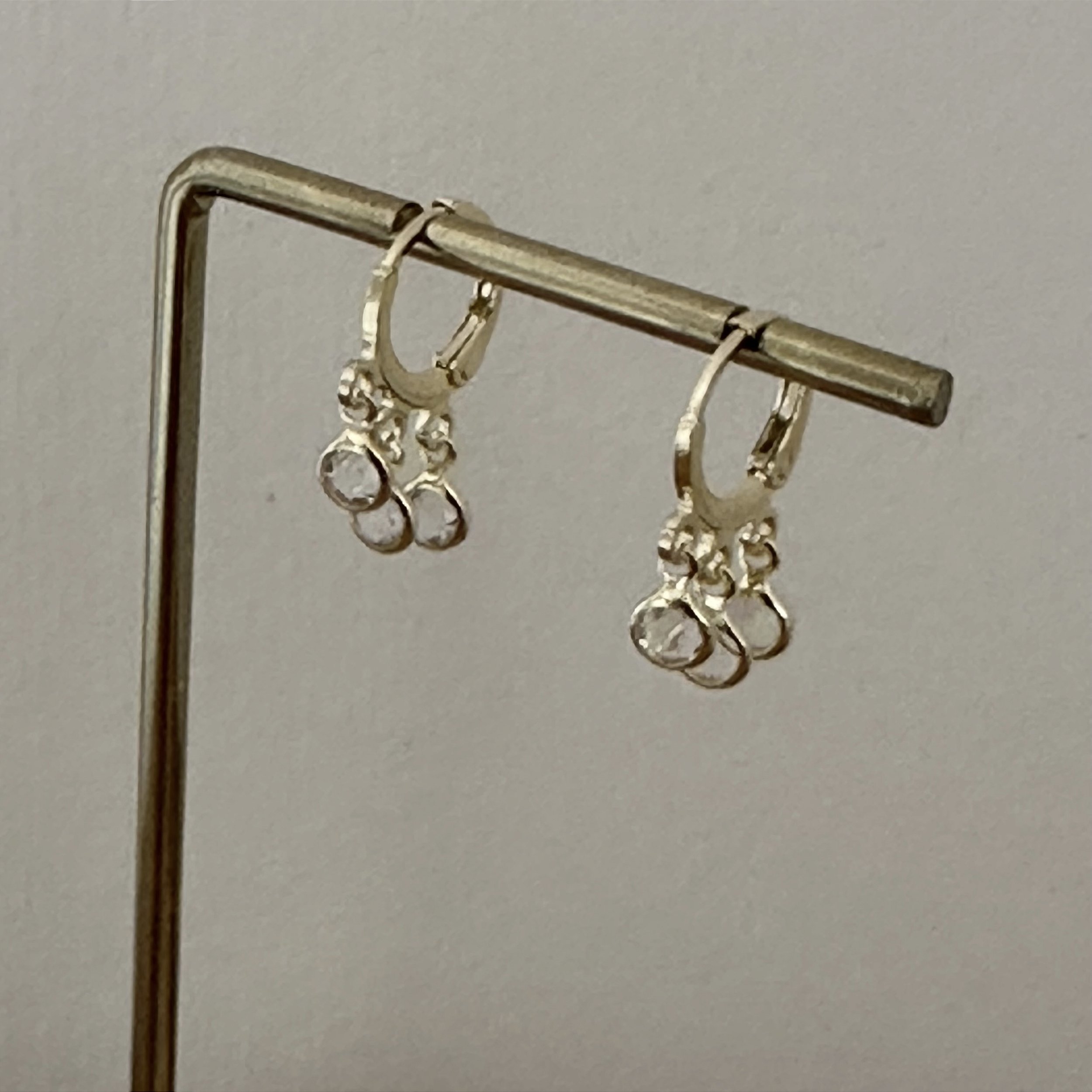 Mini Argola, com pingentes redondos de cristais, dourado - semijóia