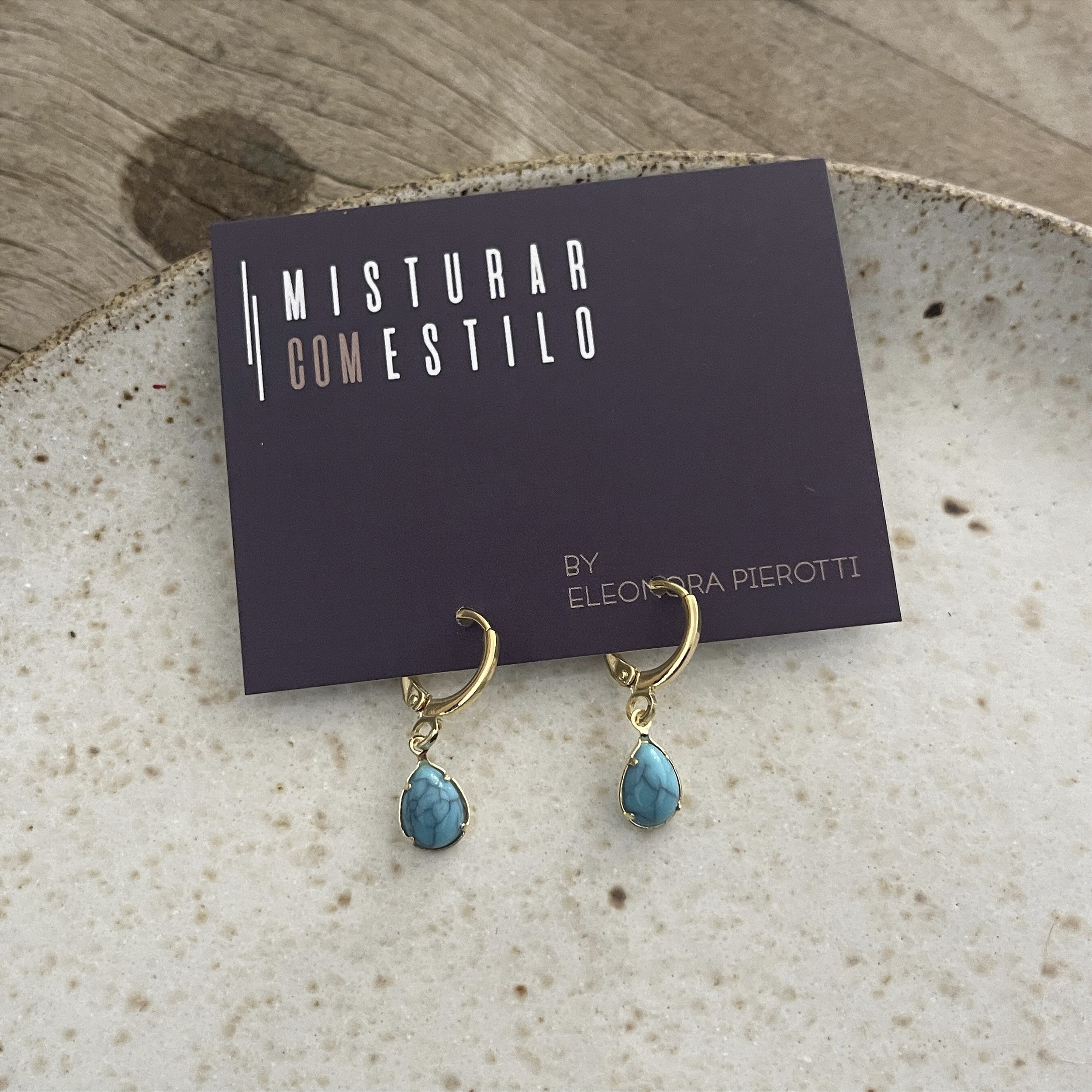 brinco betina com uma gota turquesa pendurado, douradaa - semijoia