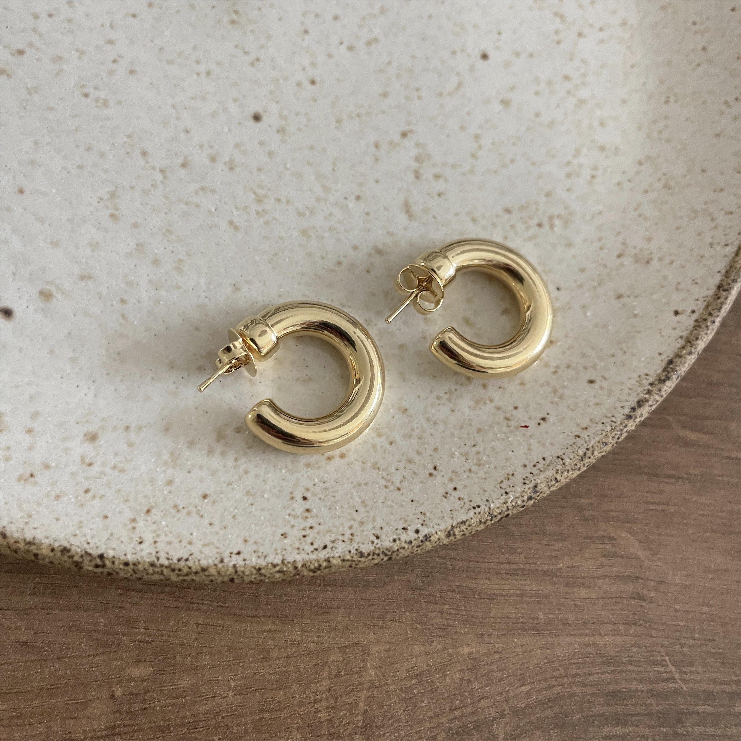 Brinco Argola Lisa, acabamento dourado, semijoia