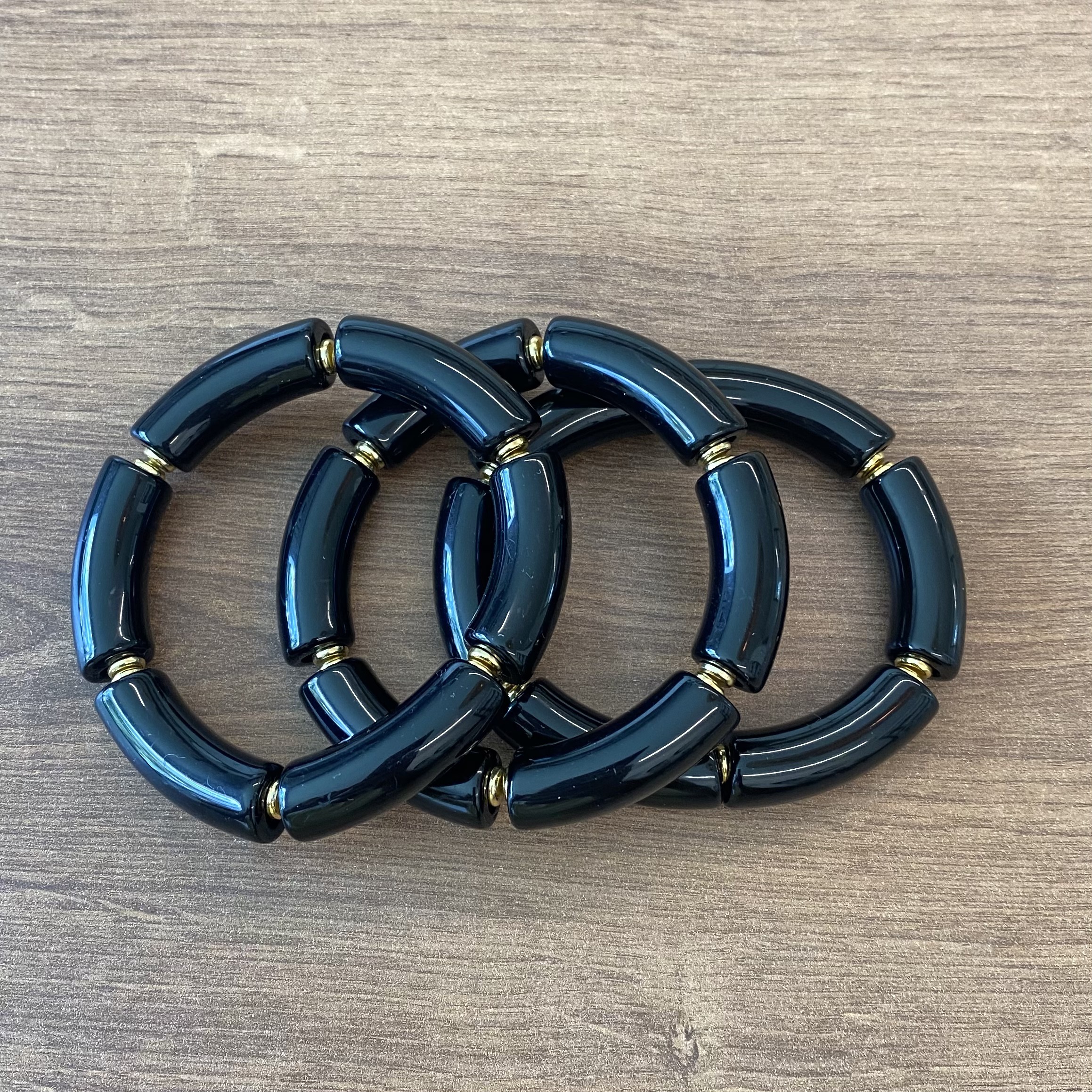 Pulseira / Bracelete, de resina, preto com detalhes dourado.