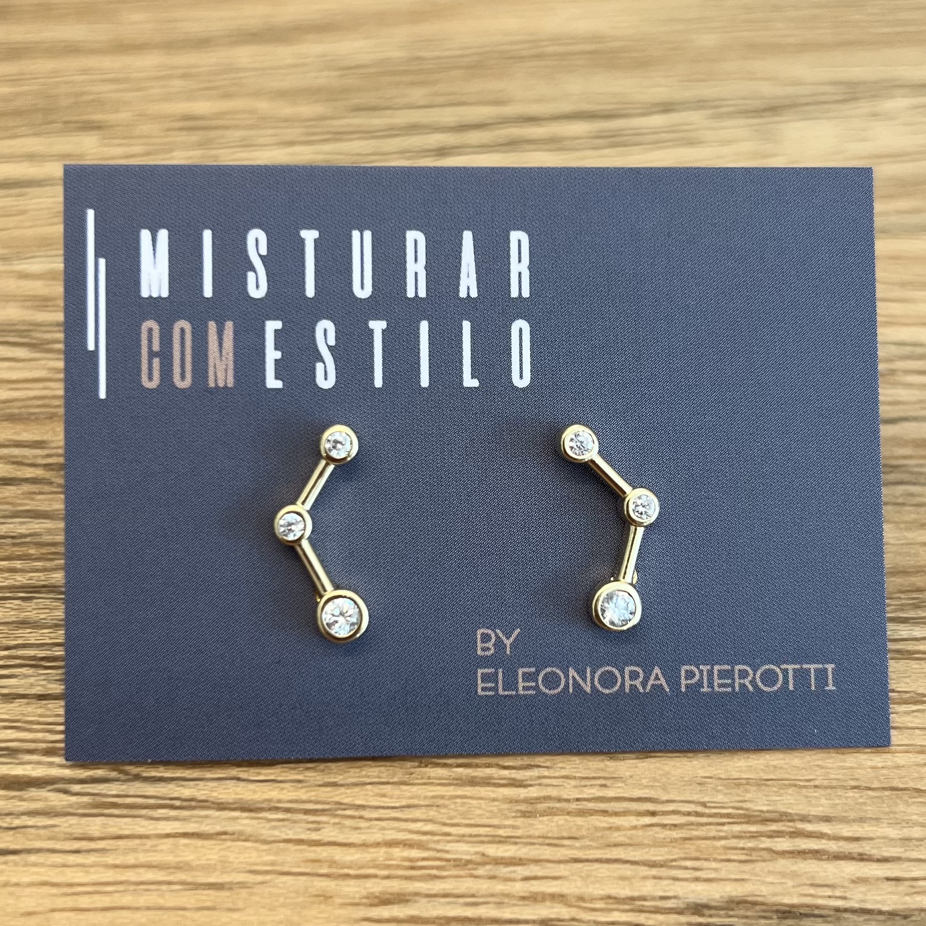 brinco três Marias, com três zircônias e acabamento em dourado - semijoia